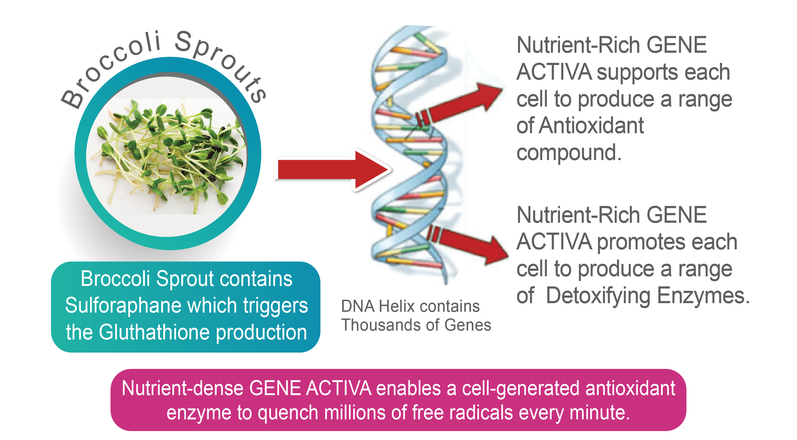GENE ACTIVA (BY Atos Wellness) is the major breakthrough in modern Nutritional Science, based on the science of Epigenetics and Nutrigenomics. It is blended with 14 world's Best Super Fruits and Vegetables including Broccoli Sprout and Apple Stem cells to boost the cell-generated Glutathione production.